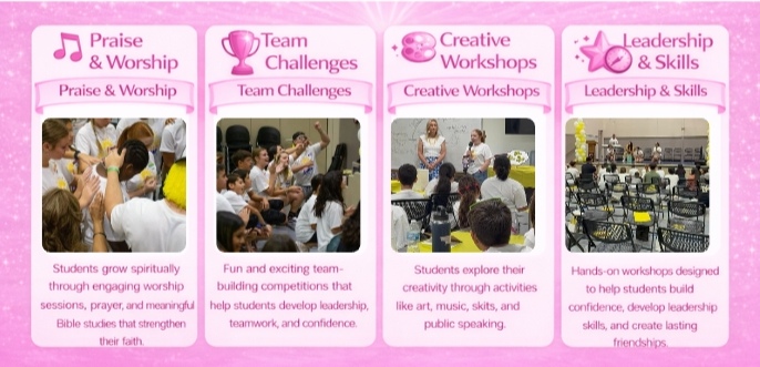 I created this camp together with my teenage daughter, Hope, after recognizing the need for a local, faith-centered, and affordable space where students can deepen their relationship with God while discovering their God-given gifts.