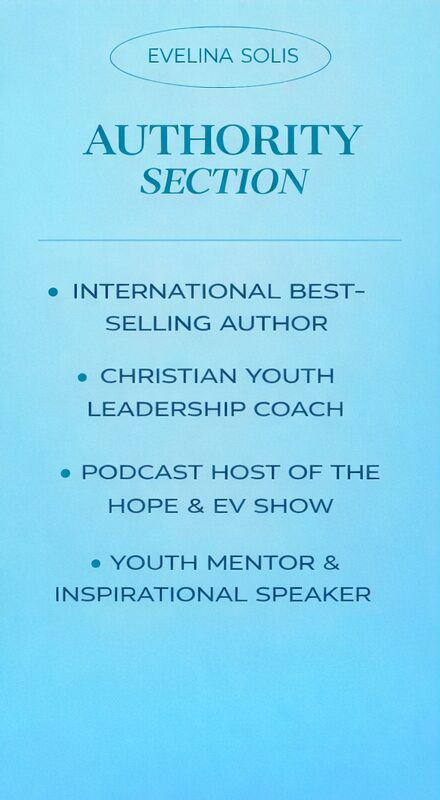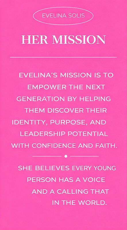 Evelina Solis is a transformational coach, inspirational speaker, educator, mentor, podcaster, and international best-selling author dedicated to empowering the next generation to lead with faith, confidence, and purpose.